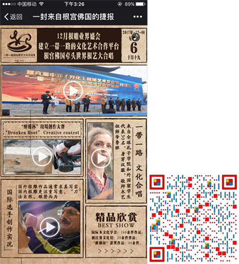 旗胜多年以来,为开化根雕艺术文化节进行线上营销推广,以新闻推广、视频推广、话题营销、H5互动等手段,将围绕“中国根雕拥抱世界”这一主题,让开化根雕文化在推进“一带一路”国际合作、经济文化交流中继续发挥重要作用,将根雕打造为开化城市的一张“金名片”。